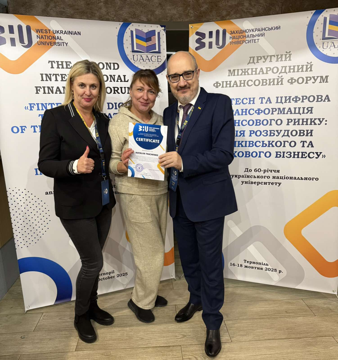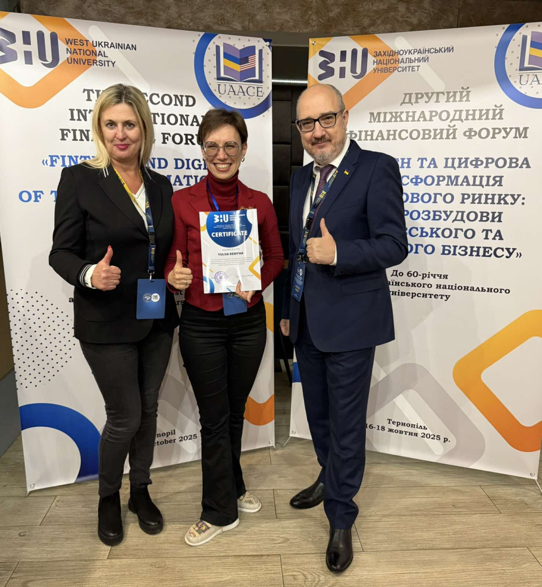 Упродовж 16-18 жовтня 2025 року тривав Другий міжнародний фінансовий форум «Fintech та цифрова трансформація фінансового ринку: візія розбудови банківського та страхового бізнесу», організований кафедрою фінансових технологій та банківського бізнесу ЗУНУ спільно з Україно-Американською асоціацією працівників вищої школи. Науковий захід об’єднав широке коло вітчизняних і закордонних експертів, практиків, представників органів влади, наукової спільноти й інших учасників з України та багатьох країн, зокрема: Австрії, Молдови, Великої Британії, Канади, США та Польщі.